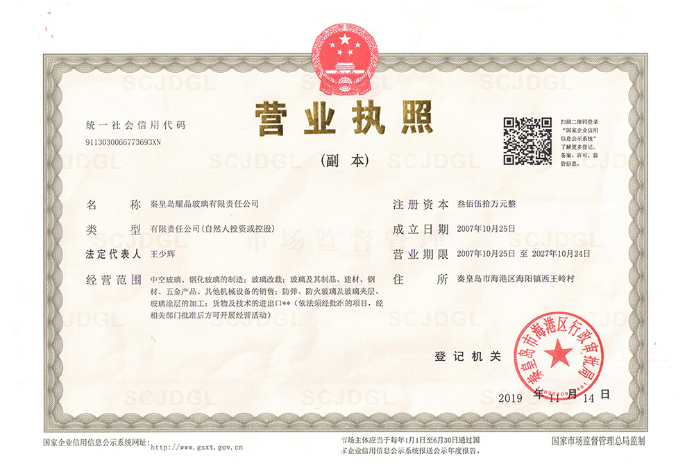 秦皇島耀晶玻璃有限責(zé)任公司,坐落于秦皇島,公司創(chuàng)始于2007年,本著“誠(chéng)實(shí)守信、客戶(hù)至上、品質(zhì)服務(wù)”的原則,取得了長(zhǎng)足穩(wěn)固的發(fā)展。目前擁有專(zhuān)業(yè)化生產(chǎn)基地,占地30余畝,具備獨(dú)立進(jìn)出口權(quán),能滿足客戶(hù)多元化建筑工程玻璃訂制需求。